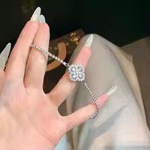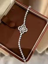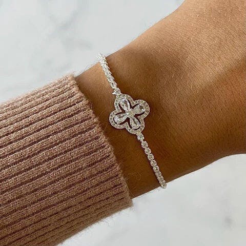Gefertigt aus 925er Sterlingsilber besticht dieses edle Armband durch ein strahlendes, zentrales Kleeblatt-Motiv, veredelt mit funkelnden AAA+ Zirkonia. Es vereint zeitlose Eleganz mit außergewöhnlicher Brillanz.